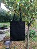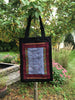 This super-stylish vertical black tote made of high-quality durable fabric has elaborate brightly-colored hand cross-stitch bands framing a unique hand-made batik patch.